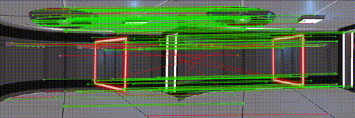 cv::drawMatchesfunction twice, first to plot the everything in red (usingcv::Scalar(0,0,255)as the color), and then again to plot inliers in green (using the inlier mask andcv::Scalar(0,255,0)). The second time, you will need to use theDrawMatchesFlags::DRAW_OVER_OUTIMGflag to draw on top of the first output. To combine flags for thecv::drawMatchesfunction, use the bitwise-or operator:DrawMatchesFlags::NOT_DRAW_SINGLE_POINTS | DrawMatchesFlags::DRAW_OVER_OUTIMG